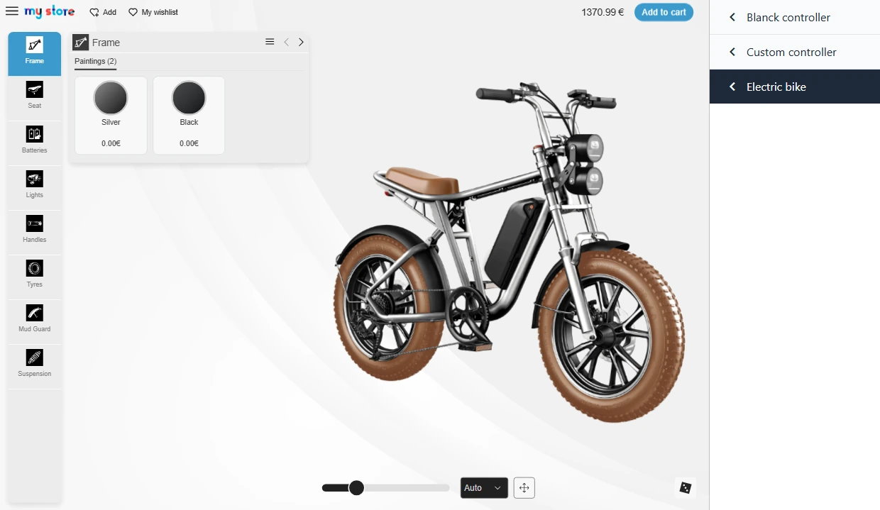 PSConfigurator also supports unlimited configuration options, including colors, materials, texts, and shape adaptative images. Despite the large number of possibilities, the configurator always remains fast and fluid thanks to a smart step-by-step image loading system that downloads only the visual assets needed for the current configuration. This ensures a responsive user experience even for highly complex products.