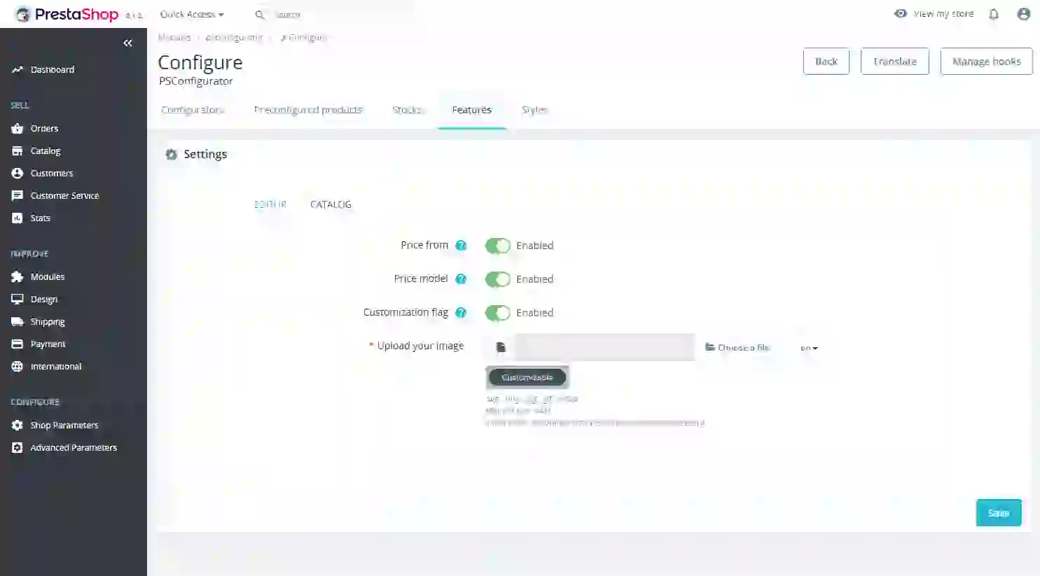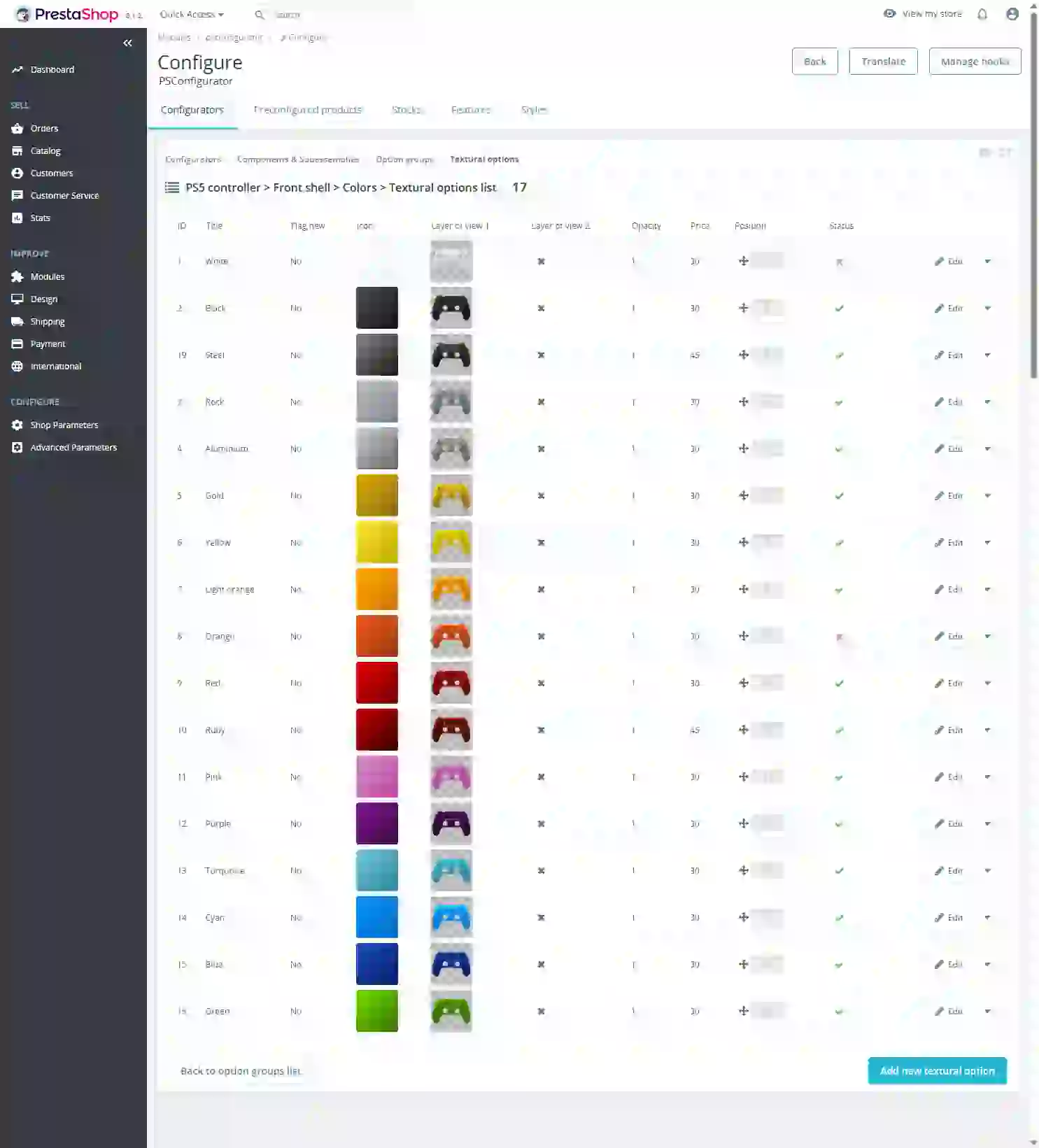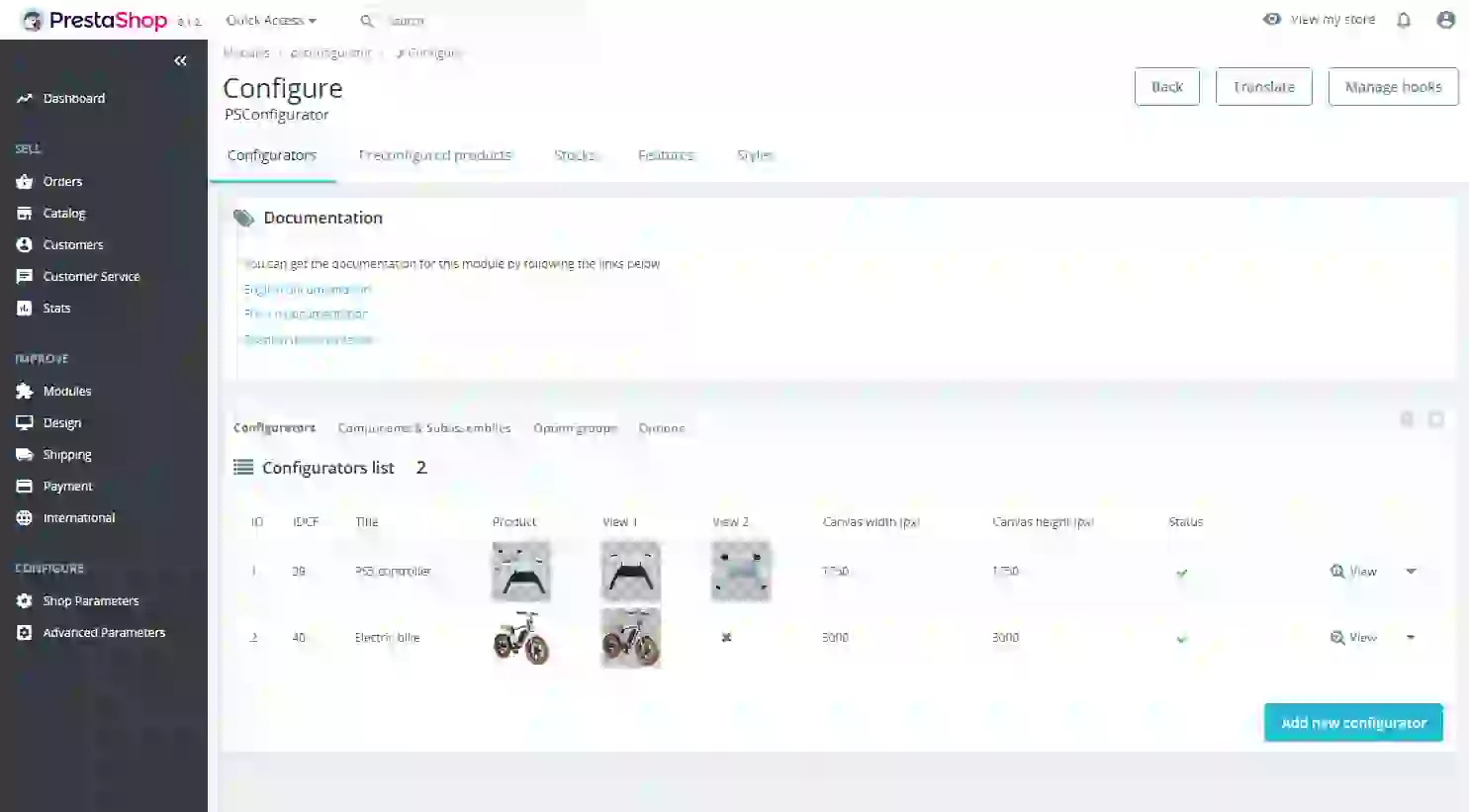 PSConfigurator is a powerful PrestaShop Product Configurator module that allows merchants to create fully customizable products and boost online sales. This all-in-one PrestaShop product customization tool enables customers to personalize products in real time and instantly generate customized quotes.