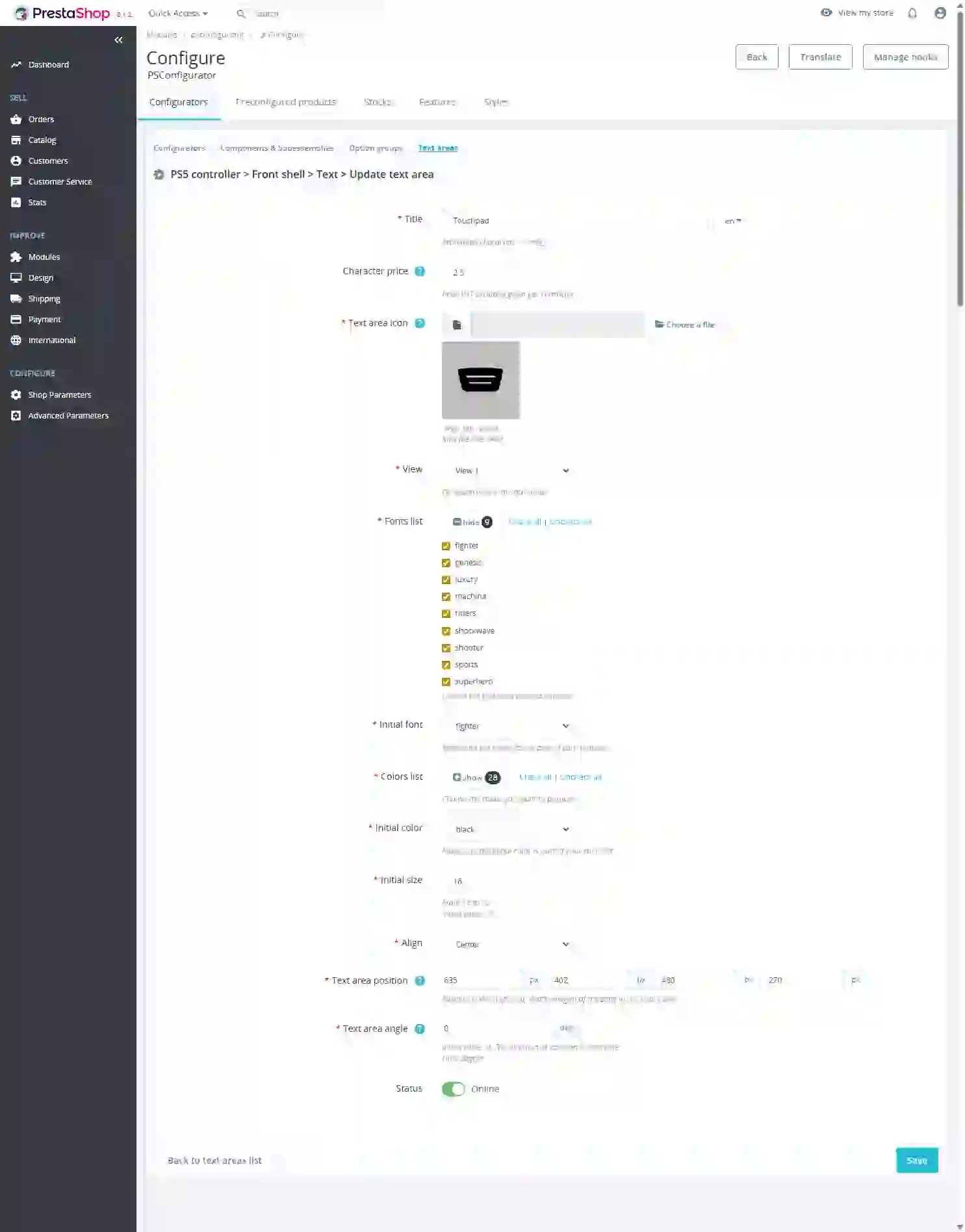 Transform any of your products into a beautiful interactive configurator directly from your Prestashop Backend.